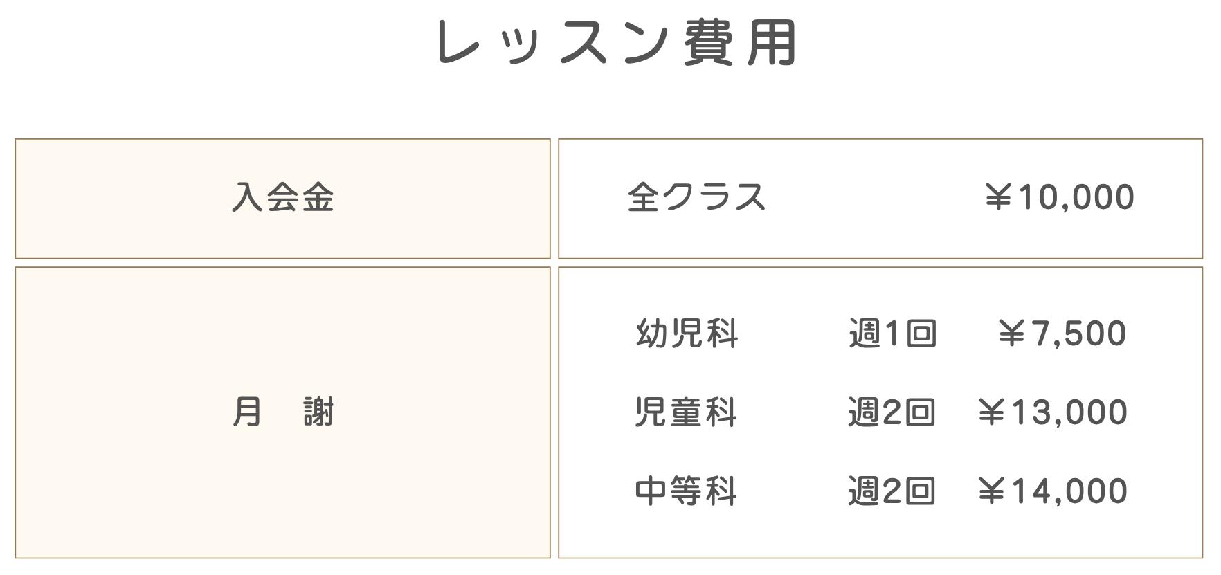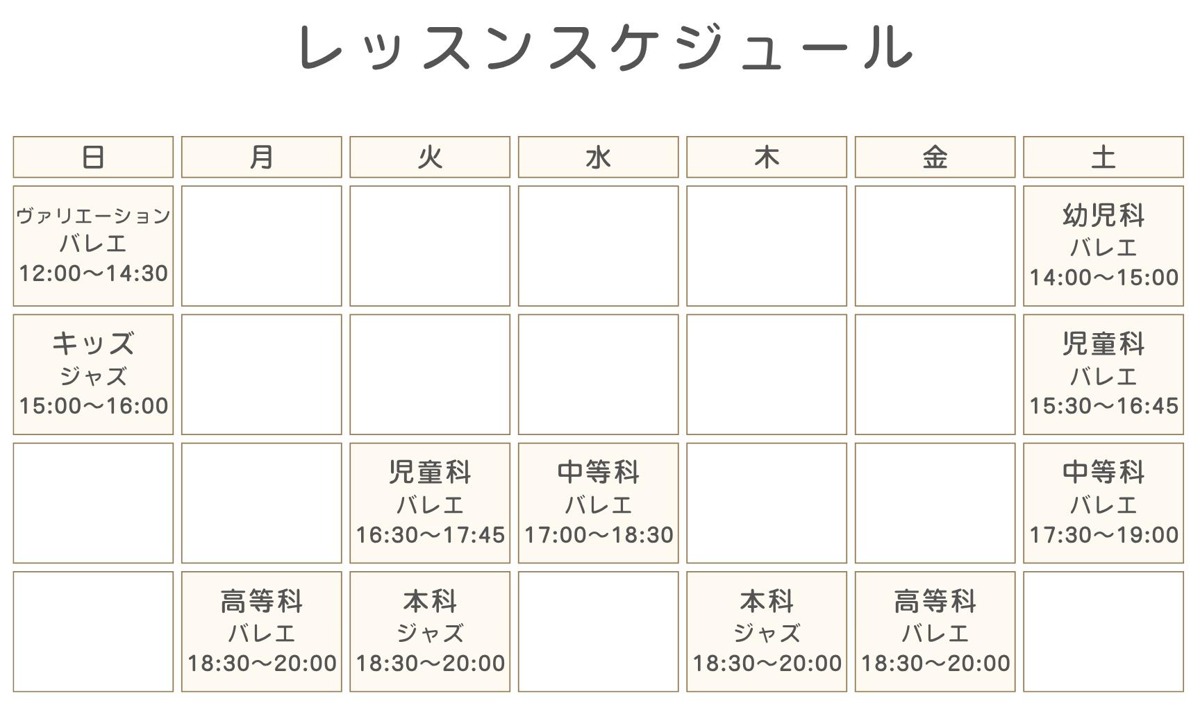 ※児童科・中等科・高等科・ヴァリエーション・JAZZクラスの受講をご希望の方はお問い合わせください。